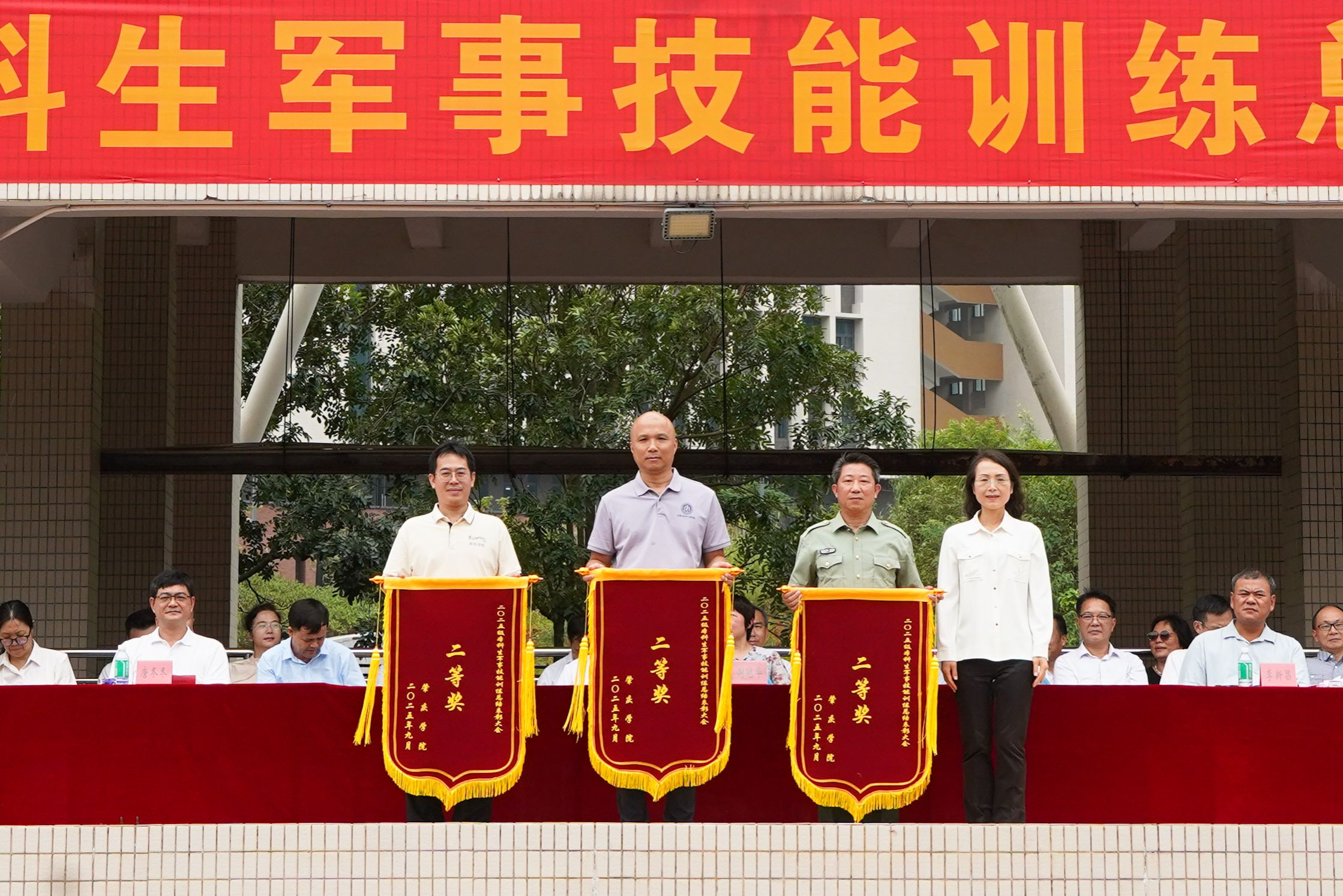 经过刻苦训练,新生连队的分列式水平显著提升。在军训阅兵环节中,他们以整齐划一的队列、铿锵有力的步伐、精神抖擞的姿态,昂首阔步地走过主席台,赢得了现场观众的阵阵热烈掌声,最终荣获二等奖,为自己的军训画上一个完满的句号。