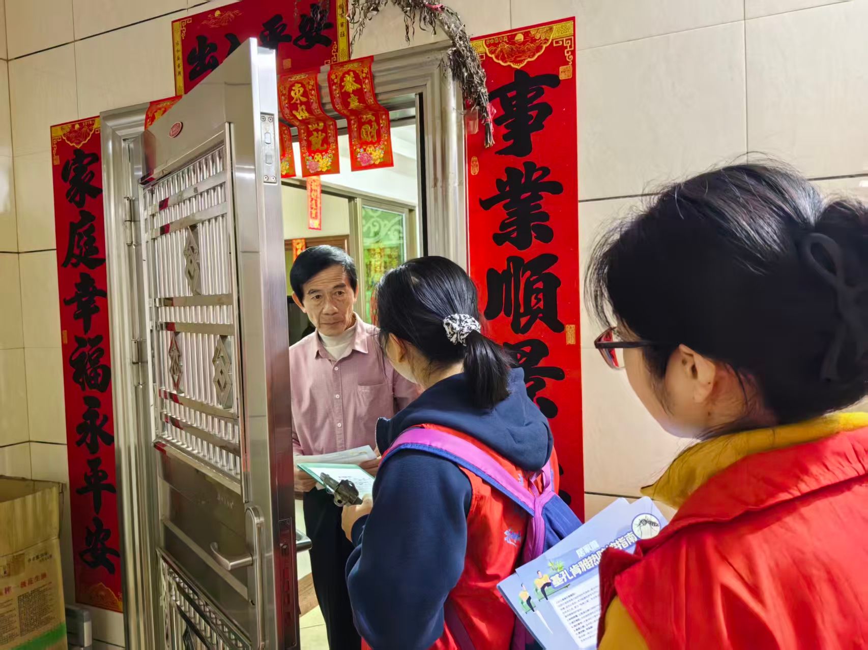 入户排查时,同志们秉持严谨细致的态度,礼貌敲门、亲切问候,逐户了解居民家庭成员构成、健康状况等关键信息,并认真做好记录。面对居民的各类疑问,他们充分发挥专业特长,以通俗易懂的语言一一解答,用真诚与专业赢得了居民的信任与配合。