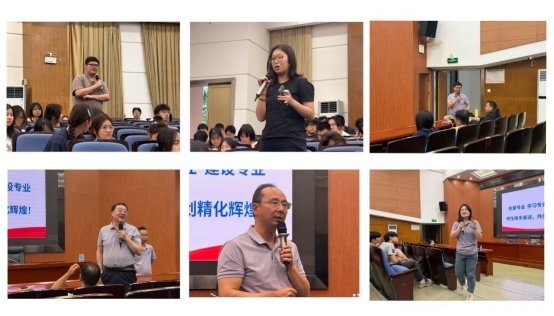 在师生交流环节,现场气氛活跃。同学们围绕专业认知、学习方法、考研备考及职业发展等话题踊跃提问。钟萍与陈君华两位老师结合自身成长奋斗史,分享了宝贵的学习经验,激励大家坚定信念,持之以恒。针对就业细分方向,徐洪伍与陈振兴两位老师特别探讨了精细化工与化妆品专业的关联与差异,建议同学们通过实验课程拓宽视野,强化实践能力。剩下的多位老师悉数发言,结合各自在教学与科研领域的心得体会,就如何提升专业能力、应对未来挑战做交流分享。